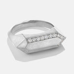 Combining classic elements with a modern touch with the Ascent Elongated Signet Ring with Diamonds makes a statement with carbon capture pavé diamonds.