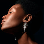 These earrings make a bold statement with their modern and elegant design, representing a blend of sophistication and style for a distinctive look. They feature 6.4 carats of stunning carbon capture diamonds, meticulously hand-set over a three-day process by artisan jewelers right in the heart of NYC's fabled Diamond District.